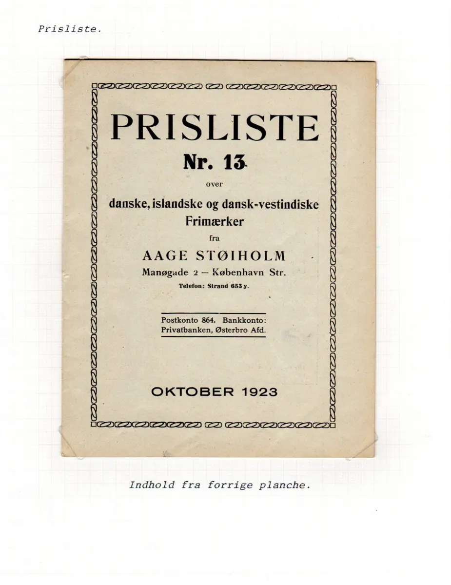 Drucksachenumschlag m. Inhalt Preisliste Nr. 13 f. dänische, isländische u. Dän. Westindien Briefmarken von Aage Stoiholm