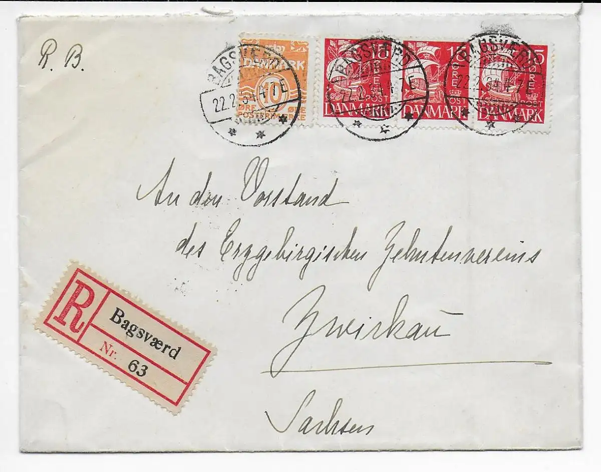 Dänemark 1934: Einschreiben Bagsvaerd nach Zwickau