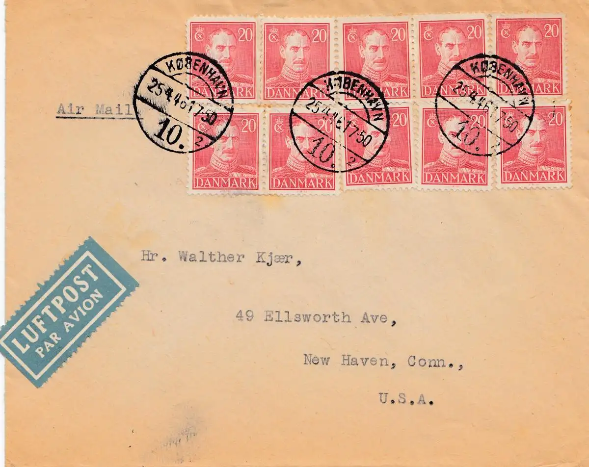 Dänemark: 1946: Luftpost Kopenhagen nach USA