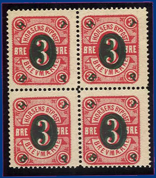 Dänemark Bypost, Horsens 3/3 öre, ungebr. 4er-Block! #S663