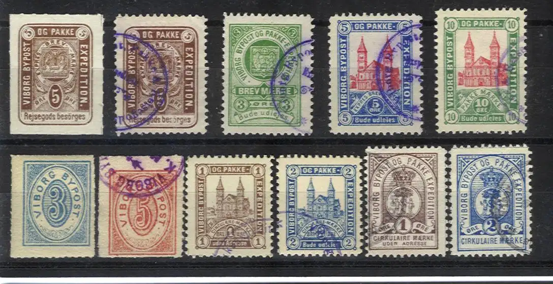 Dänemark Bypost, Viborg, 11 meist gebr. Marken. #S599