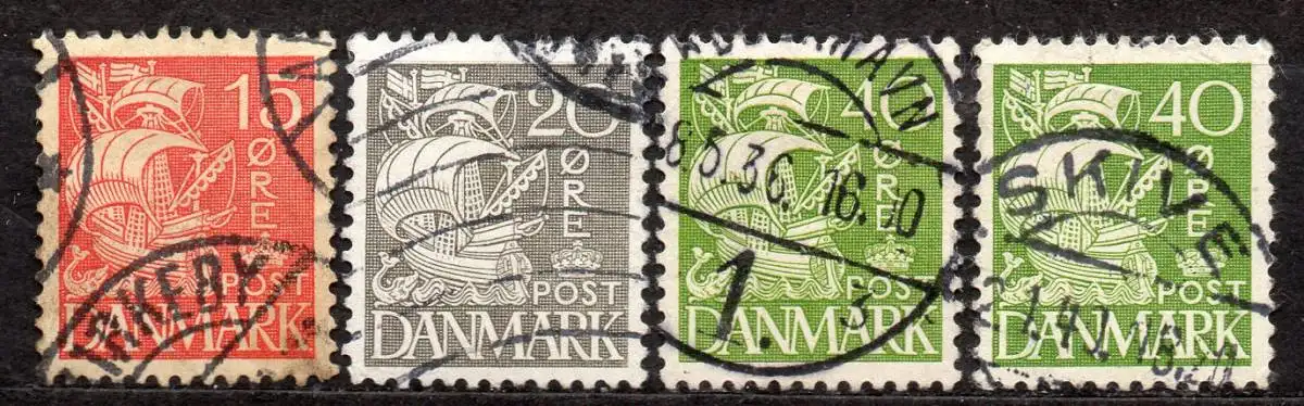 Dänemark, Mi-Nr. 202 II, 203 I, 207 I + 207 II gest., Karavelle