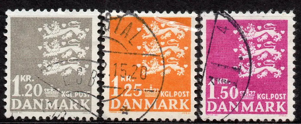 Dänemark, Mi-Nr. 400 x - 402 x gest., kompl., Kleines Reichswappen