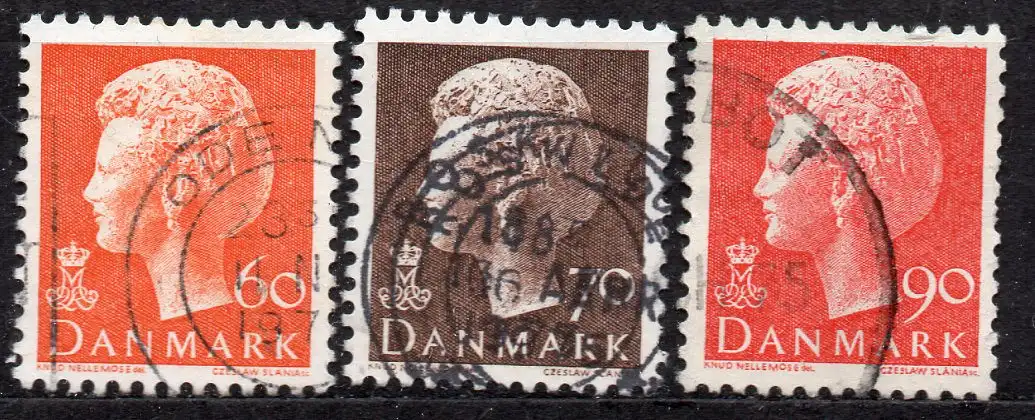 Dänemark, Mi-Nr. 569 y, 570 y + 571 x gest., Königin Margrethe II.