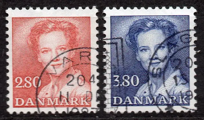 Dänemark, Mi-Nr. 823 + 825 gest., Königin Margrethe II.