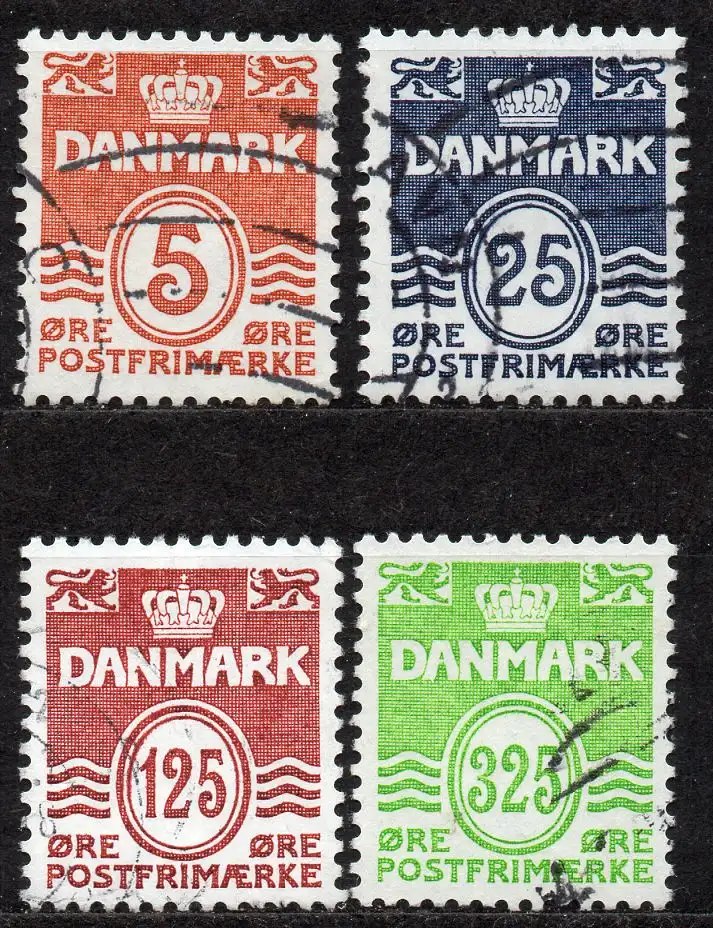 Dänemark, Mi-Nr. 852, 963, 964 + 965 gest., Wellenlinien