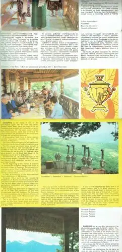guter bis sehr guter Zustand, geringe Gebrauchs- und Alterungsspuren: teils leicht knittrig, Werbeprospekt für diesen Stadtteil von Sotschi am Schwarzen Meer, unweit des Kaukasus und seine Teeplantagen Text in Russisch + Englisch + Französisch + Deutsch, Papier, ca. 21 x 15, 8 Seiten mit 8 Bildern