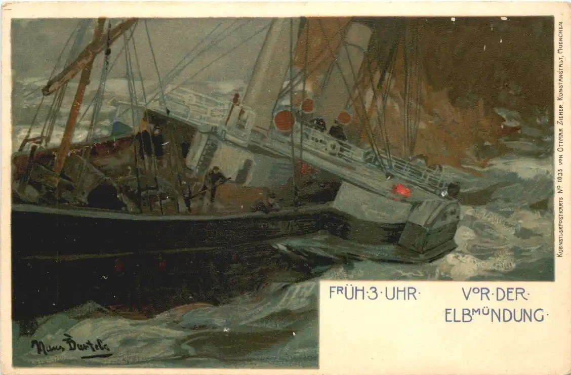 Dampfer - Früh 3 Uhr - Künstler Hans Bartels - Litho -783160