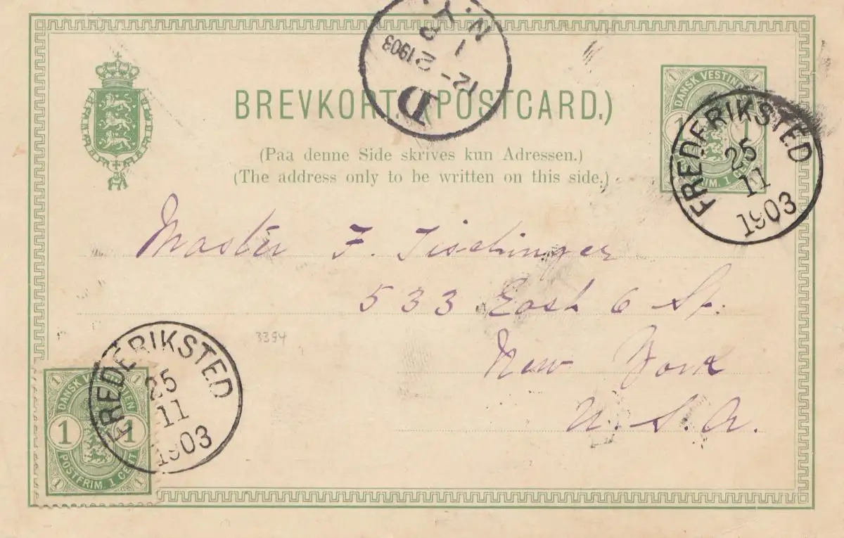 Dansk-Vestindien: 1903: post card Frederiksted to New York