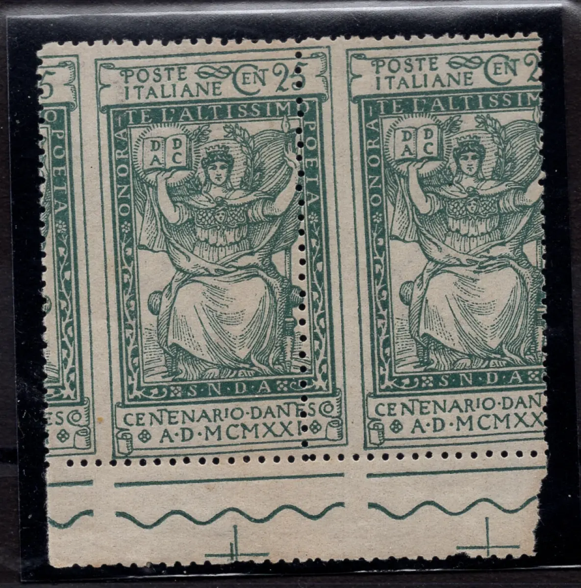 MNH - Vollgummi - Dante Cent. 25 n. 117ndc Paar mit stark nach links verschobener vertikaler Verzahnung unterer Blattkante, neuer perfekter Vollgummi - Schön und ungewöhnlich - Kat. euro 450 Cod. 3273/WEB