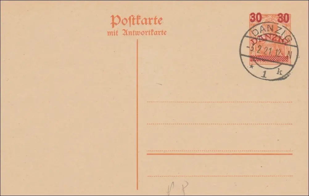 Danzig: Ganzsache P8 mit Stempel Danzig 1921 mit Blanko Antwort