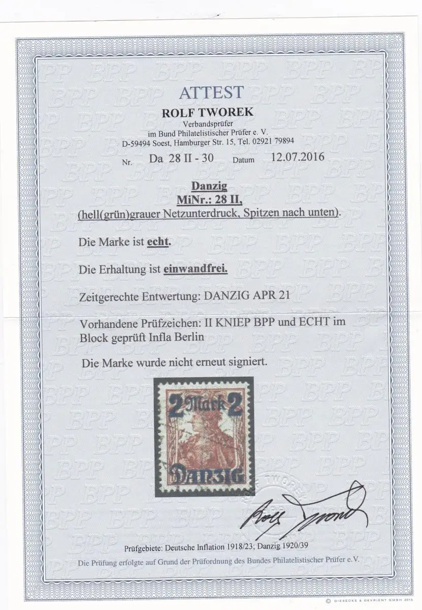 Danzig: MiNr. 28II, Stempel Danzig 1921, BPP Attest