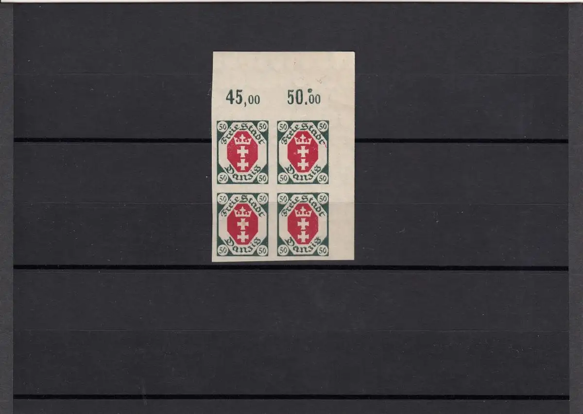 Danzig: MiNr. 80 Ungezähnt im Eckrand-Viererbloc VE2, postfrisch