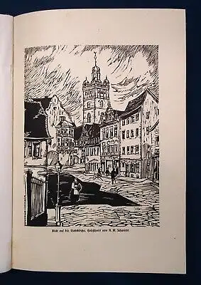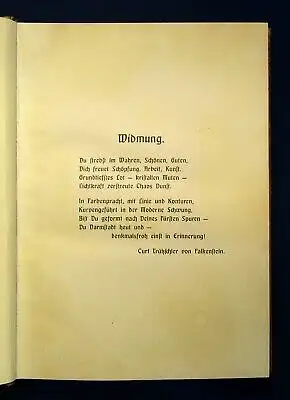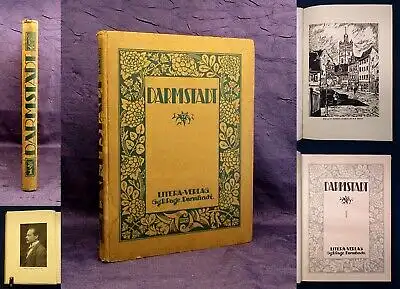 Darmstadt I. Gedruckt in den Jahren 1917/18/19 in einer Auflage von 500 Abzügen und 20 nummerierten Abzügen auf Indiapapier, in der Hof- Buchdruckerei H. Hohmann, Darmstadt". Mit einem Holzschnitt " Blick auf die Stadtkirche " von A. M. Schwindt und einem Bildnis Großherzogs Ernst Ludwig von Hessen bei Rhein