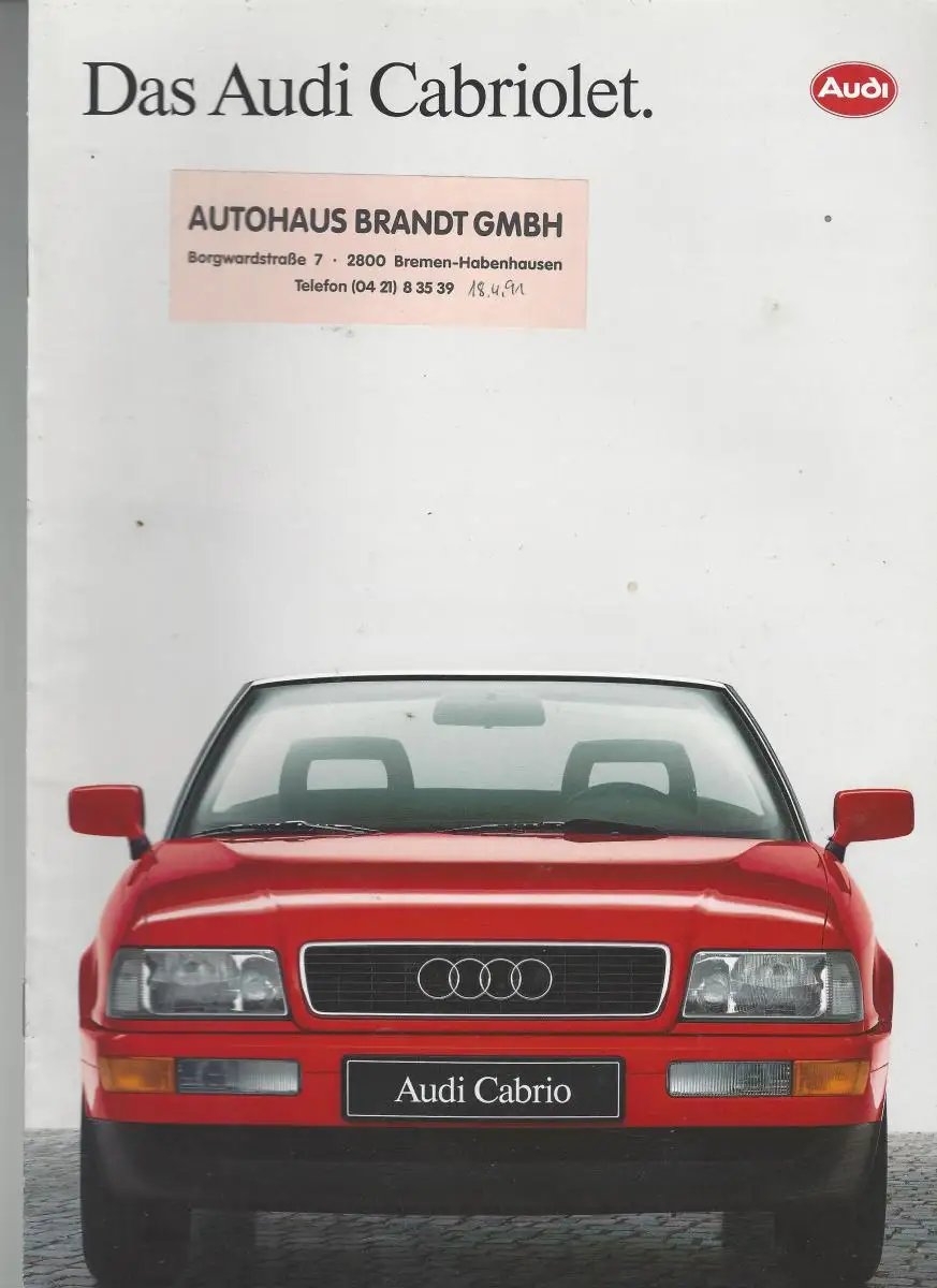 Das Audi Cabriolet. 1/1991. Prospekt.