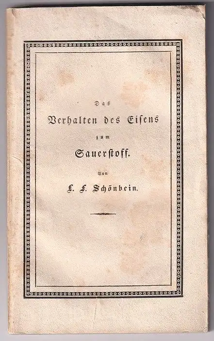 Bemerkungen: Poggendorff II, 830; Darmstaedter 429; Darmstaedter 429 - Erste Ausgabe der ersten eigenständigen Publikation Schönbeins.