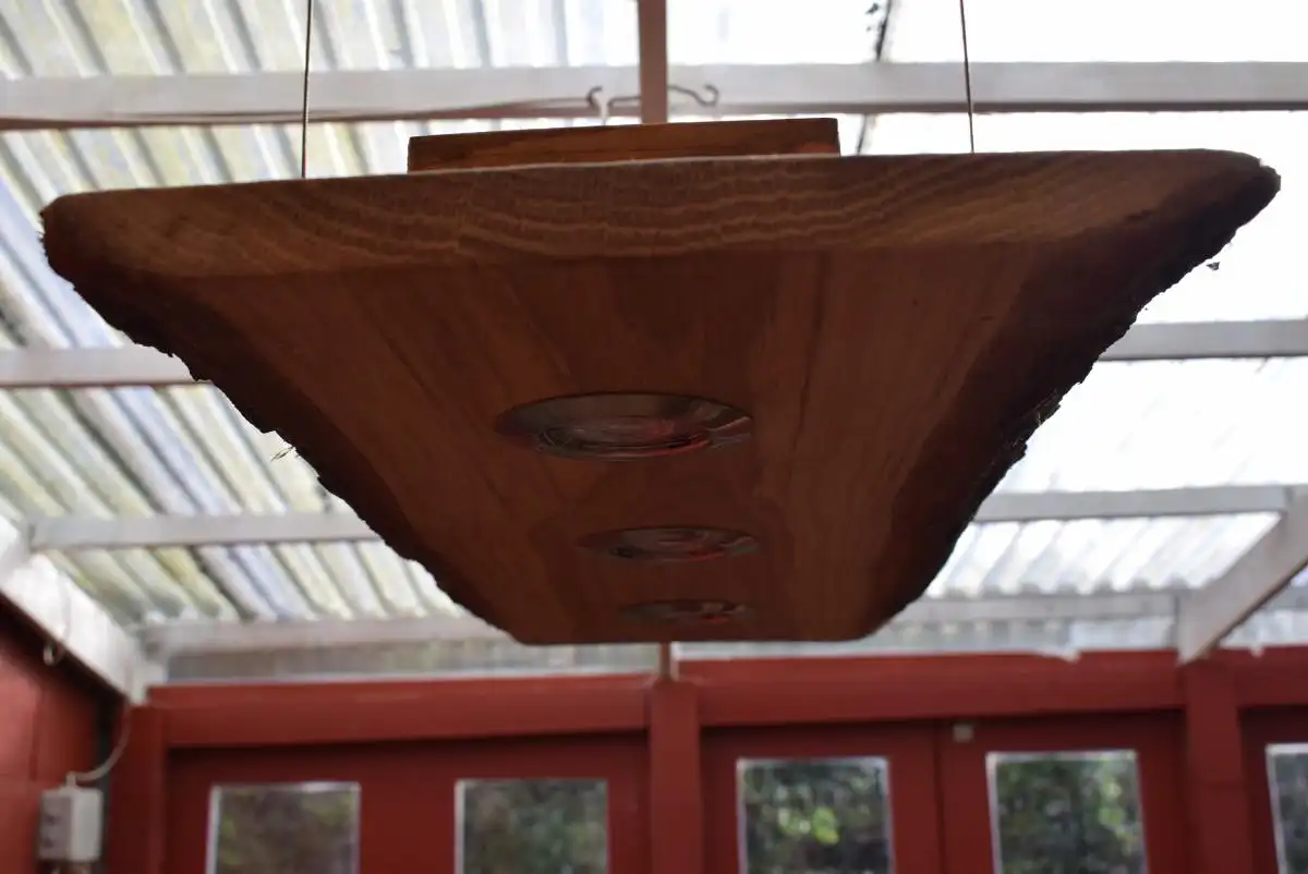 Handgefertigte Deckenleuchte aus massiver Eiche .