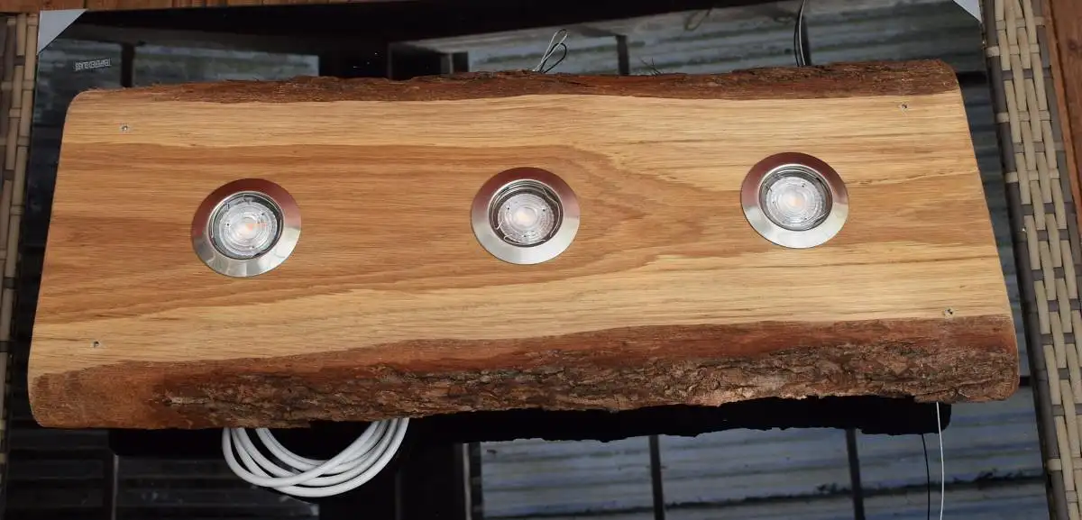 Deckenleuchte Eiche mit Rinde , 3 LEDs dimmbar , 69cm Länge ,Oberfläche geölt (Leinoelfinis)