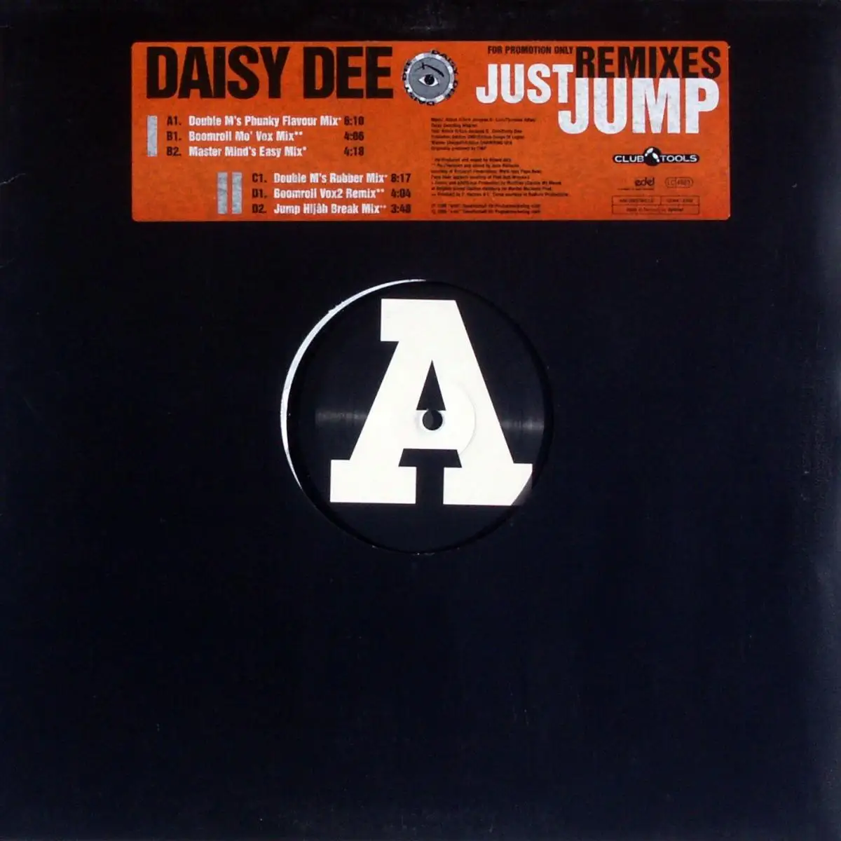 2x 12" Maxi Daisy Dee - Just Jump Remixes, Promo, neutrales Cover mit Info-Aufkleber, Zustand Platte VG+ Hülle VG+; Made in Germany 1996 Club Tools 0062760 CLU, Tracks Double M's Phunky Flavour Mix, Boomroll Mo' Vox Mix, Master Mind's Easy Mix, Double M's Rubber Mix, Boomroll Vox2 RMX, Jump Hijah Break Mix