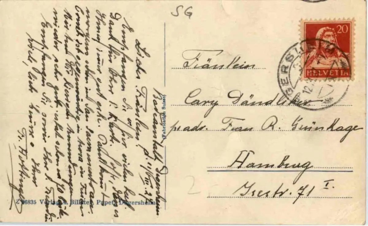 Danke. Alles Bestens. Können Sie mir allenfalls mitteilen, aus welchem Jahr die Postkarte stammt? Besten Dank.