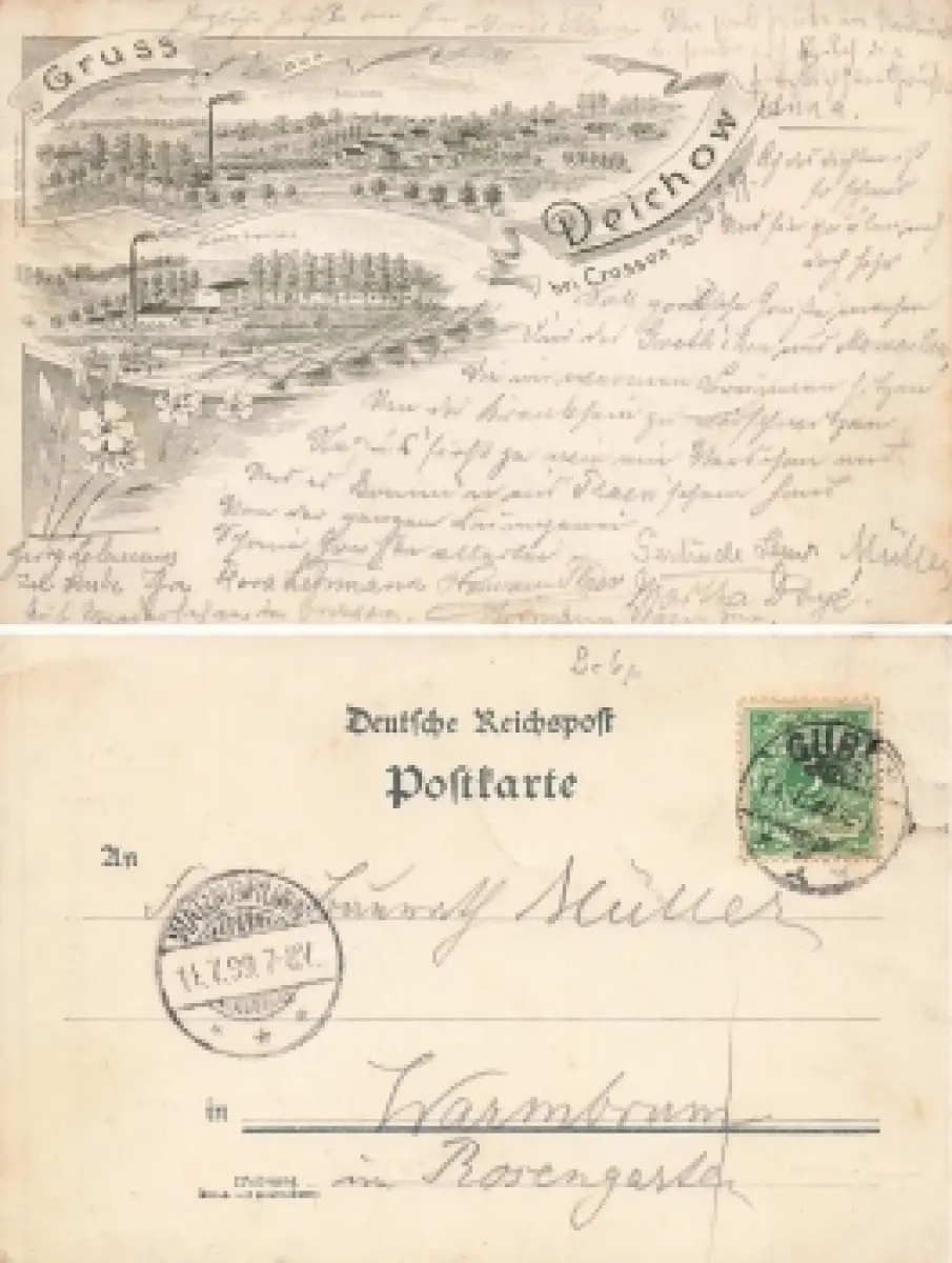 Deichow bei Crossen Oder Litho Papierfabrik Dychow o 14.7.1899
