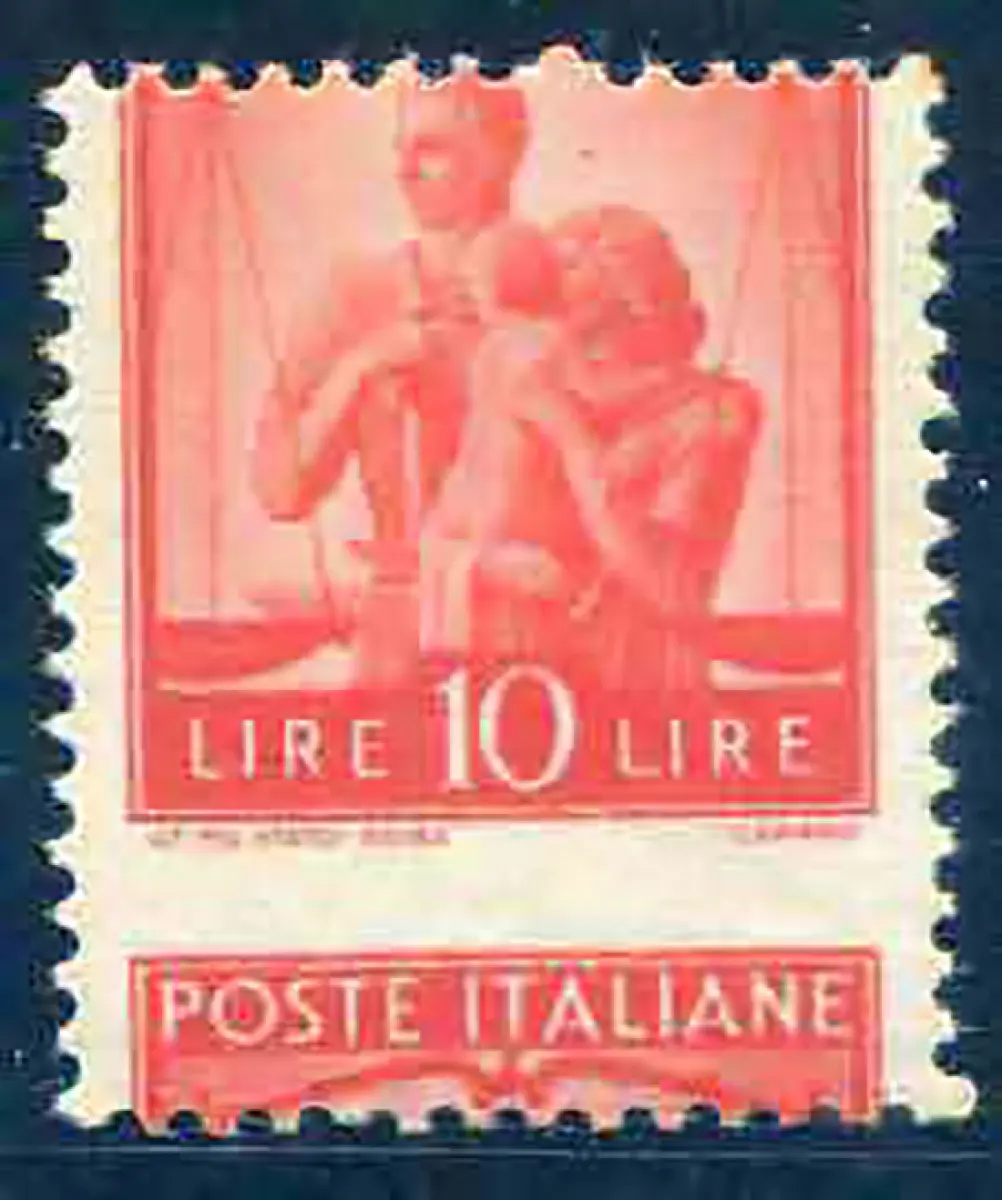 Vollgummi - Democratica Lire 10 Nr. 559u stark vertikal verschobene Verzahnung (Poste Italiane unten) - Kat. euro 125 n. 529/6