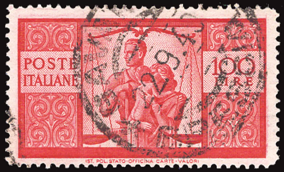 GEBRAUCHT - Democratica Lire 100 Nr. 565 erste Verzahnungsplatte 14, 1/4 Sorte Doppelgravur charakteristisch Posiz. 11 (Sass. spec. n. 25Aa) - sehr schön zum Annullieren und Zentrieren Cod.568/182