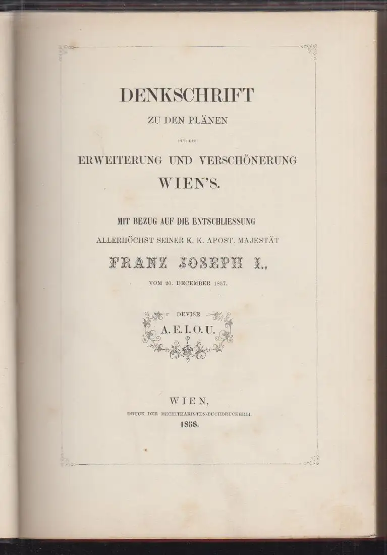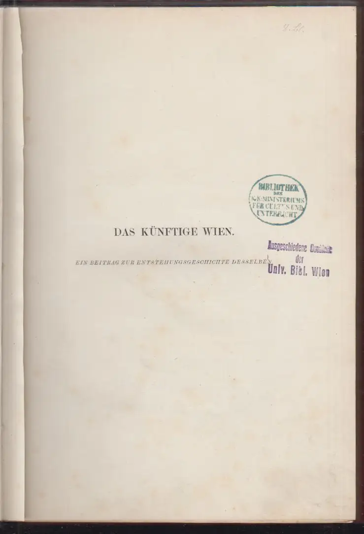 Bemerkungen: Gugitz II, 9805 - Enthält auf den ersten 13 nicht numerierten Seiten: `Das künftige Wien. Ein Beitrag zur Entstehungsgeschichte desselben`. Ohne Plan von Wien nach Abtragung der Stadtmauer.