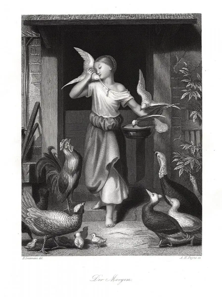 Der Morgen. Originaler Stahlstich, gestochen von Payne um 1850