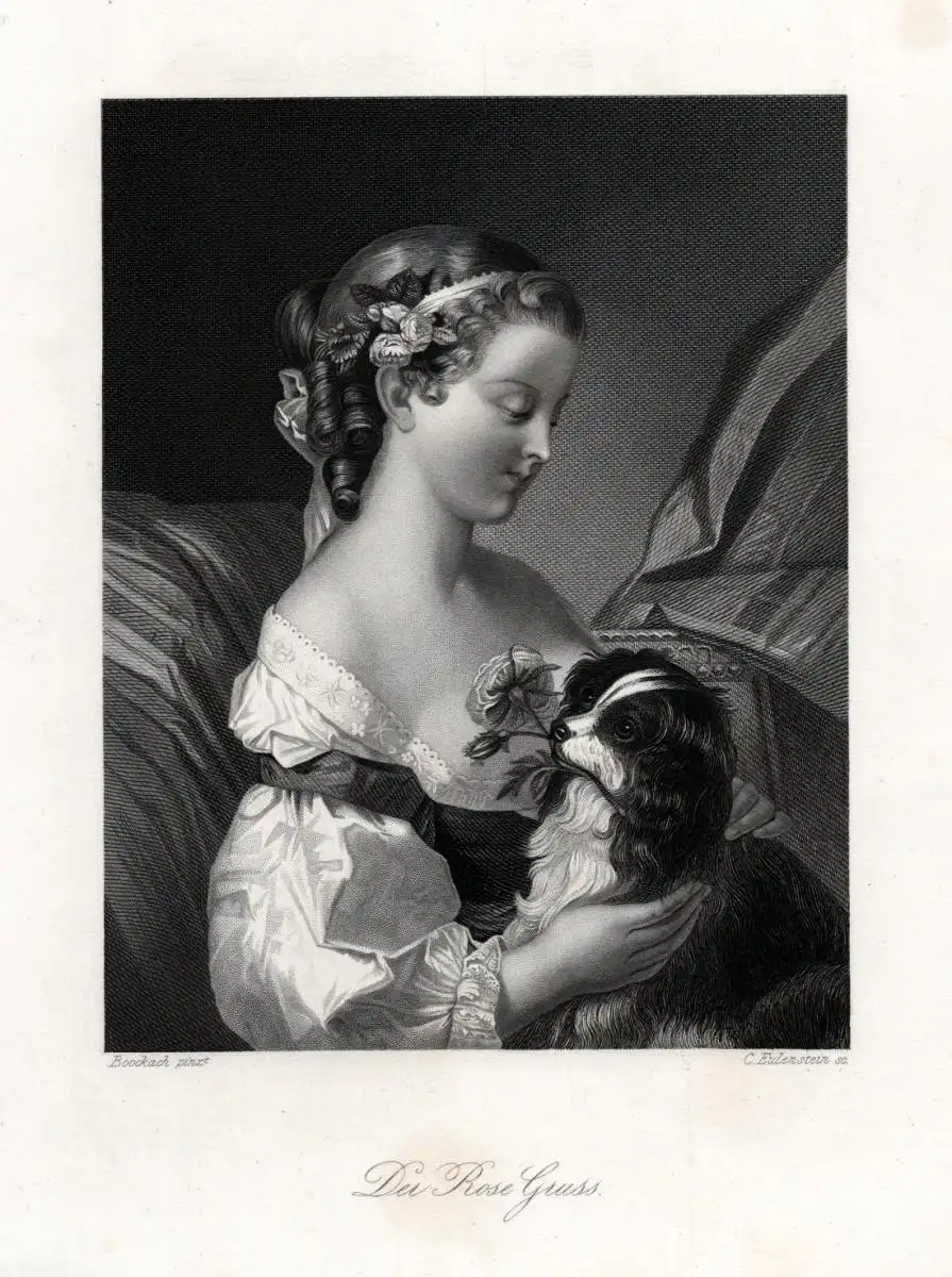 Der Rose Gruß. Originaler Stahlstich, gestochen von Eulenstein um 1850