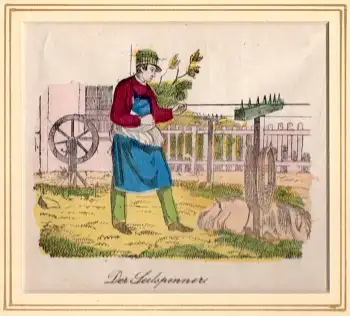 Der Seilspinner original Holzschnitt Altkoloriert um 1820