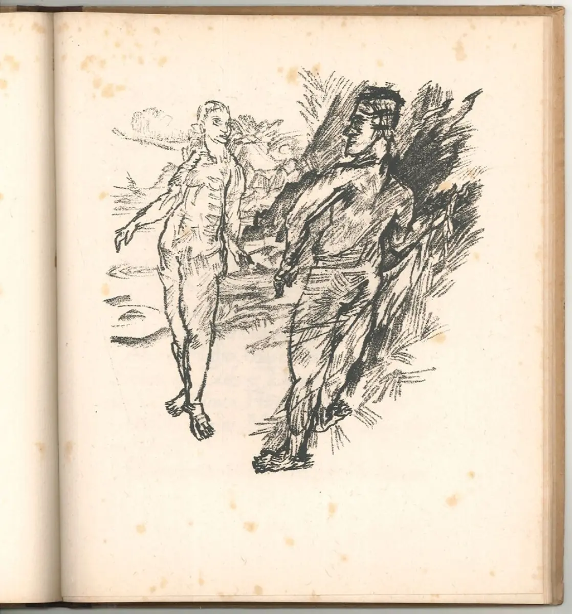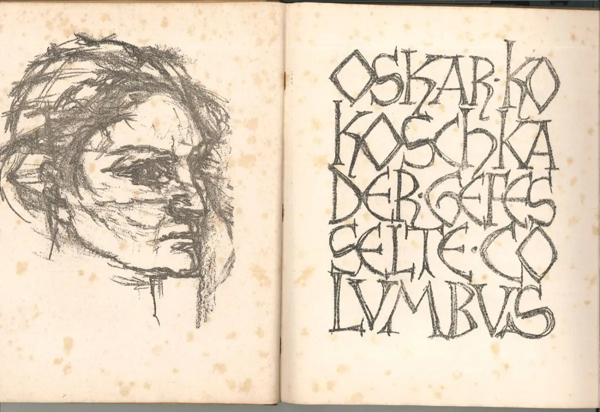 Bemerkungen: Rodenberg 397.4; Raabe/Hannoch-Bode 166.8 Anmerkung - Die Textgestaltung stammt von E. R. Weiss. Das Kokoschkas Werk war als Fortsetzung der "Träumenden Knaben" gedacht. Das Frontisp. zeigt das Porträt von Alma Mahler-Werfel. Die Dichtung Kokoschkas hatte ursprünglich den Titel "Der weiße Tiertöter". Fotolithographierte Verkleinerung der großen Ausgabe, die in der Reihe "Neue Bilderbücher" erschien. - Inliegend ein Waschzettel: "Der Künstler legt Wert auf doe Fesstellung, daß seine Zeichnungen zu den diesem Bande beigegebenen Tafeln bereits aus dem Jahre 1913 stammen. Wegen des Krieges und großer Schwierigkeiten bei der Herstellung dieser Luxusausgabe verzögerte sich das Erscheinen bis zum Jahre 1920. Georg Müller Verlag, München". .