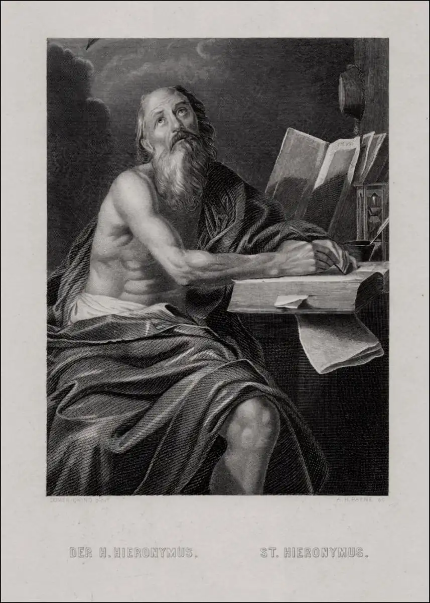 Der heilige Hieronymus. Originaler Stahlstich von Payne, um 1850