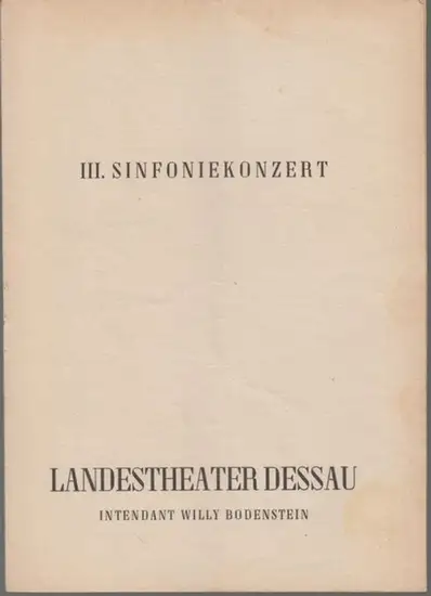 Dessau. - Landestheater. - Anhaltisches Theater. - Intendant: Willy Bodenstein. - Red. : Erhard Schmidt. - Felix Mendelssohn - Bartholdy / Heinz Röttger / Pjotr Tschaikowski: Landestheater Dessau. Heft 13 der Spielzeit 1955 / 1956. - III. Sinfoniekonzert.