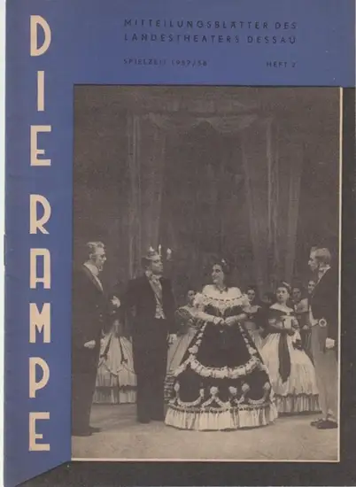 Dessau. - Landestheater. - Rampe, Die. - Anhaltisches Theater. - Intendant: Willy Bodenstein. - Wolf Hochheim. - Oskar Mehring u. a: Die Rampe. Heft 2 der Spielzeit 1957 / 1958. Mitteilungsblätter des Landestheaters Dessau. - Aus dem Inhalt: Zu unseren Ne
