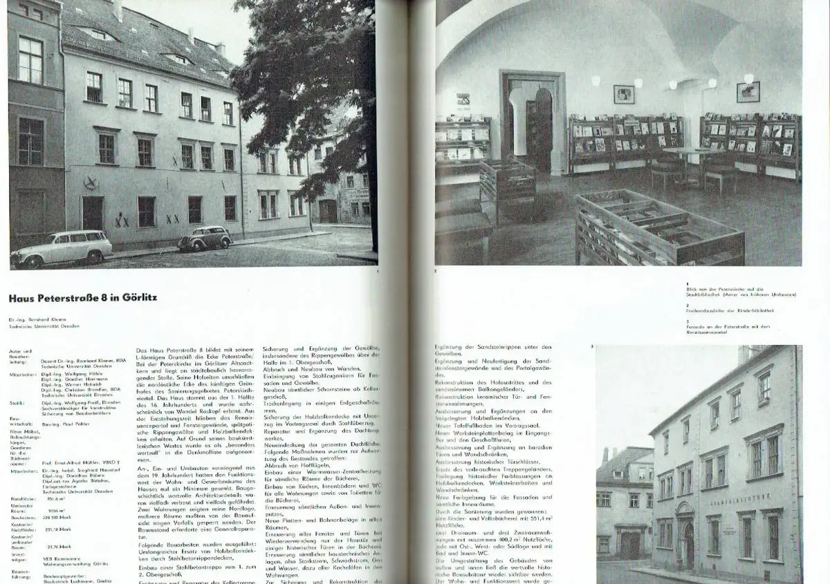 sehr guter Zustand, geringe Gebrauchs- und Alterungsspuren, alle Artikel ohne Angabe der (Länge) sind 1-3 Seiten lang - Notizen - Hans Schmidt 75 Jahre (4 Seiten) - Hans Schmidt und die Architektur der zwanziger Jahre - Hans Schmidt und das industrielle Bauen - Hans Schmidt und die Theorie - Der Architekt — gestern und morgen - Neues Leben in alten Räumen - Probleme heutiger Denkmalpflege - Kuranlagen und Goethe-Theater in Bad Lauchstädt (6 Seiten) - Kultur- und Bildungszentrum Merseburg (12 Seiten) - Städtebauliche Situation - Dom und Schloß - Haus der Kultur - Schloßgartensalon und Schloßgarten - Das Oberschloß zu Kranichfeld (4 Seiten) - Vorschlag für die Aufwertung eines Gebietes der Freiberger Altstadt (4 Seiten) - Haus Badenstraße 12 in Stralsund - Haus Mühlenstraße 21 in Stralsund - Barocksaal am Universitätsplatz in Rostock (4 Seiten) - Haus Peterstraße 8 in Görlitz (4 Seiten) - Zu einigen Arbeiten von Professor E. A. Mühler - Historisches Figurenportal an einem Wohnungsneubau in Gera - Zum Problem der Wirtschaftlichkeit von Instandsetzungs- und - Modernisierungsarbeiten an Wohngebäuden - III. Internationales Kolloquium des Bauwesens in Rostock - Personenaufzüge in Wohngebäuden (4 Seiten) - Informationen - Beilage: Rat der Stadt Cottbus: Wettbewerbsausschreibung Umgestaltung der Innenstadt (1 Seite), kartoniert, ca. 23 x 31,5, 62 Seiten mit zahlreichen Bildern
