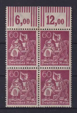 Dt.Reich MiNo. 184 ** Oberrand-4er-Bl. Walze 2´9´2/3´7´3