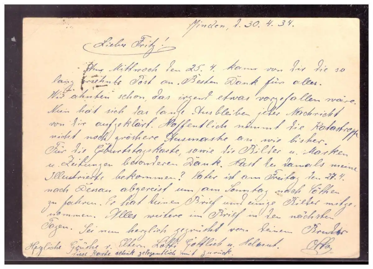 Dt-Reich (021240) Ganzsache mit ZF gelaufen Minden nach Südafrika Swakopmund, gelaufen mit AK Swakopmund vom 25.5.1934