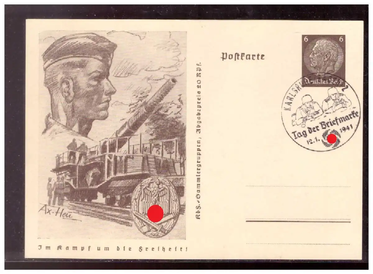 Dt- Reich (021251) Propagandaganzsache P242/05 Eisenbahn Artillerie, blanco gest. Karlsruhe mit SST am 12.1.1941