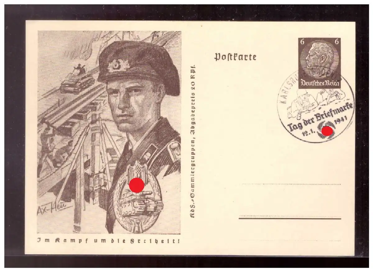 Dt- Reich (021252) Propagandaganzsache P242/04 Panzertruppe, blanco gest. Karlsruhe mit SST am 12.1.1941