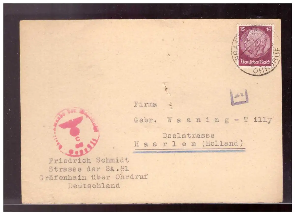 DT-Reich (021614) Postkarte Gräfenhain über Ohrdruf gelaufen nach Holland, (Komischer Text??) 1942 mit Zensur