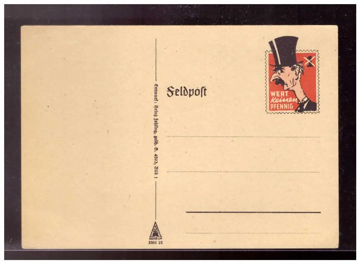 Dt- Reich (022540) Feldpost Postkarte Wert keinen Pfennig, Chamberlin, ungebraucht aber RS beschrieben
