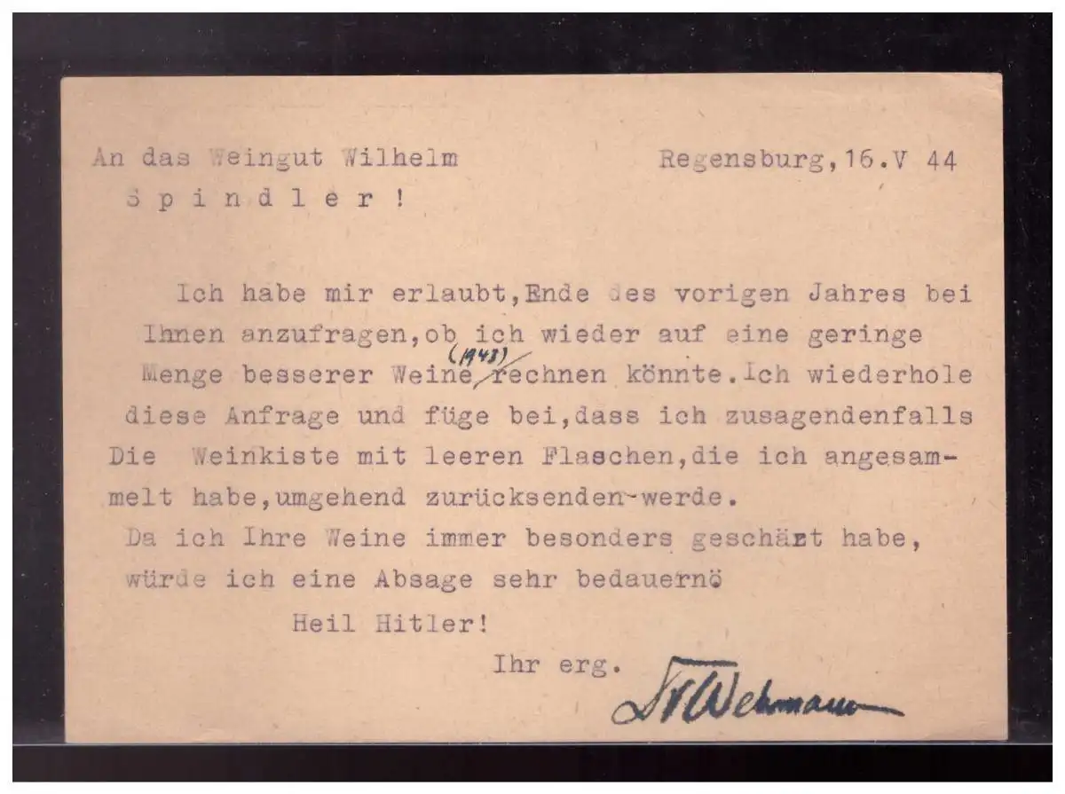 Dt.- Reich (023551) Ganzsache P299 mit Orginal Unterschrift Dr.Wehrmann Reichsbahnpräsident mit Bitte um besseren Wein