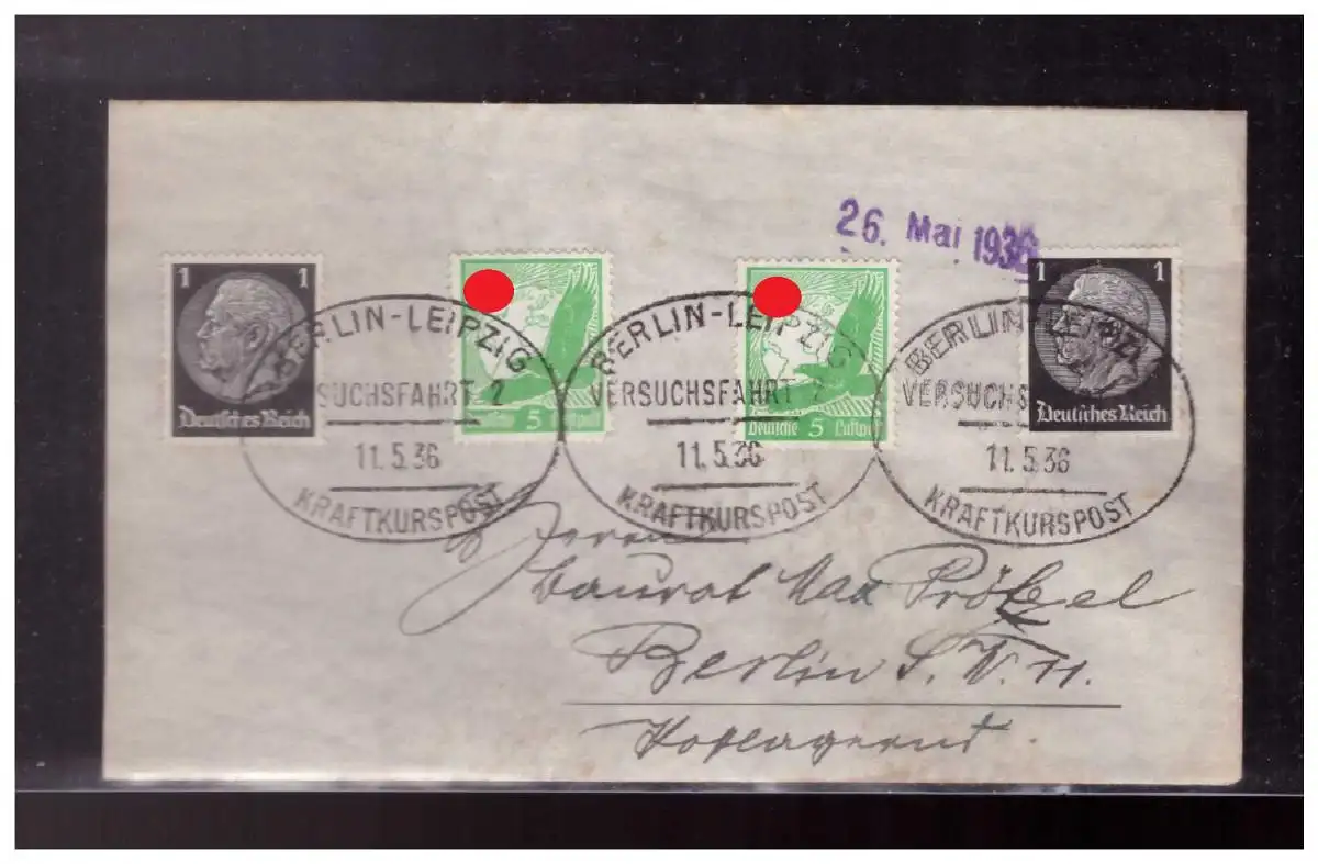 Dt- Reich (023717) Brief mit Sonderstempel Kraftkurspost Versuchsfahrt 2 Berlin - Leipzig am 11.5.1936 (Rückfahrt)