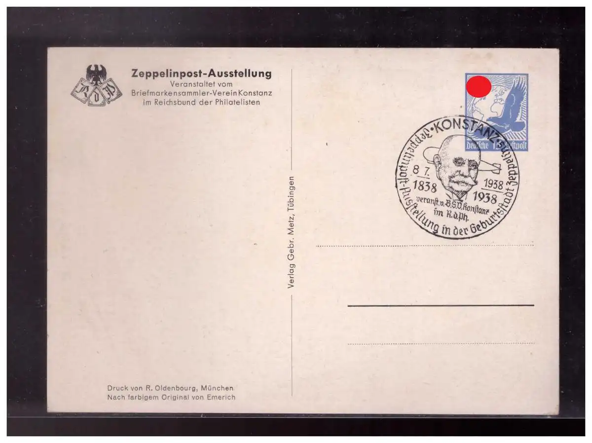 Dt.- Reich (023799) Privatganzsache Fech PP144/ C1, Zeppelinpost- Ausstellung anl.d. 100. Geburtstag des Grafen Zeppelin