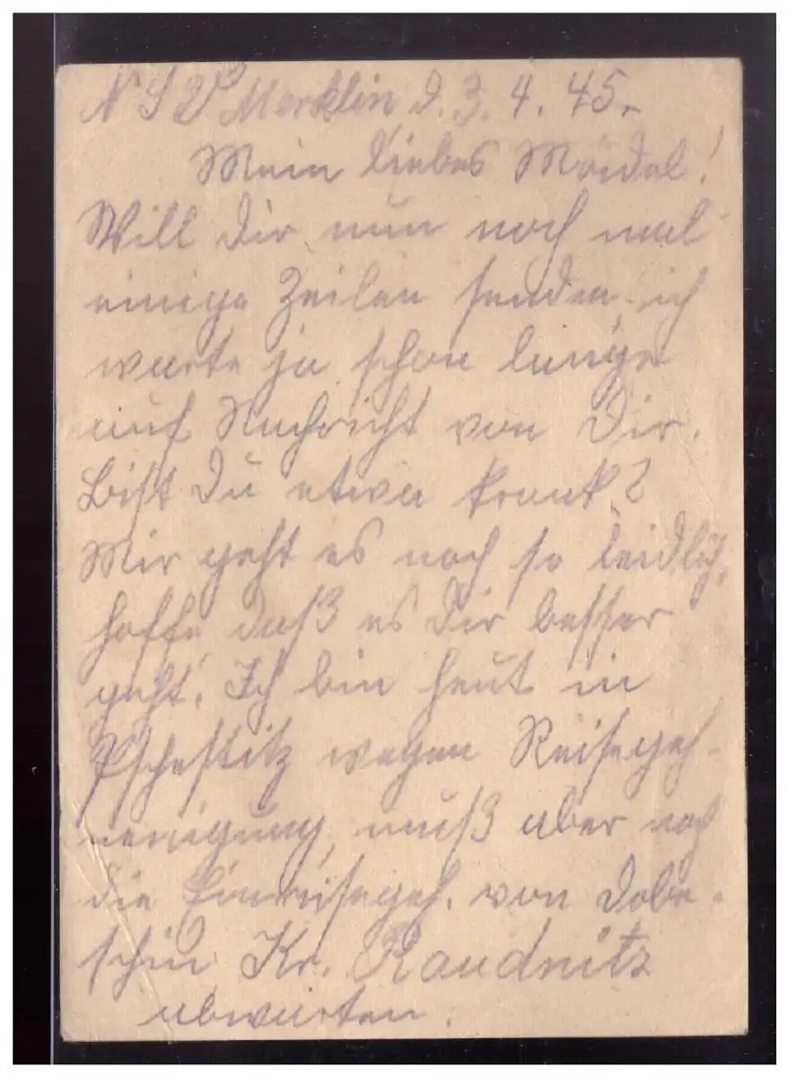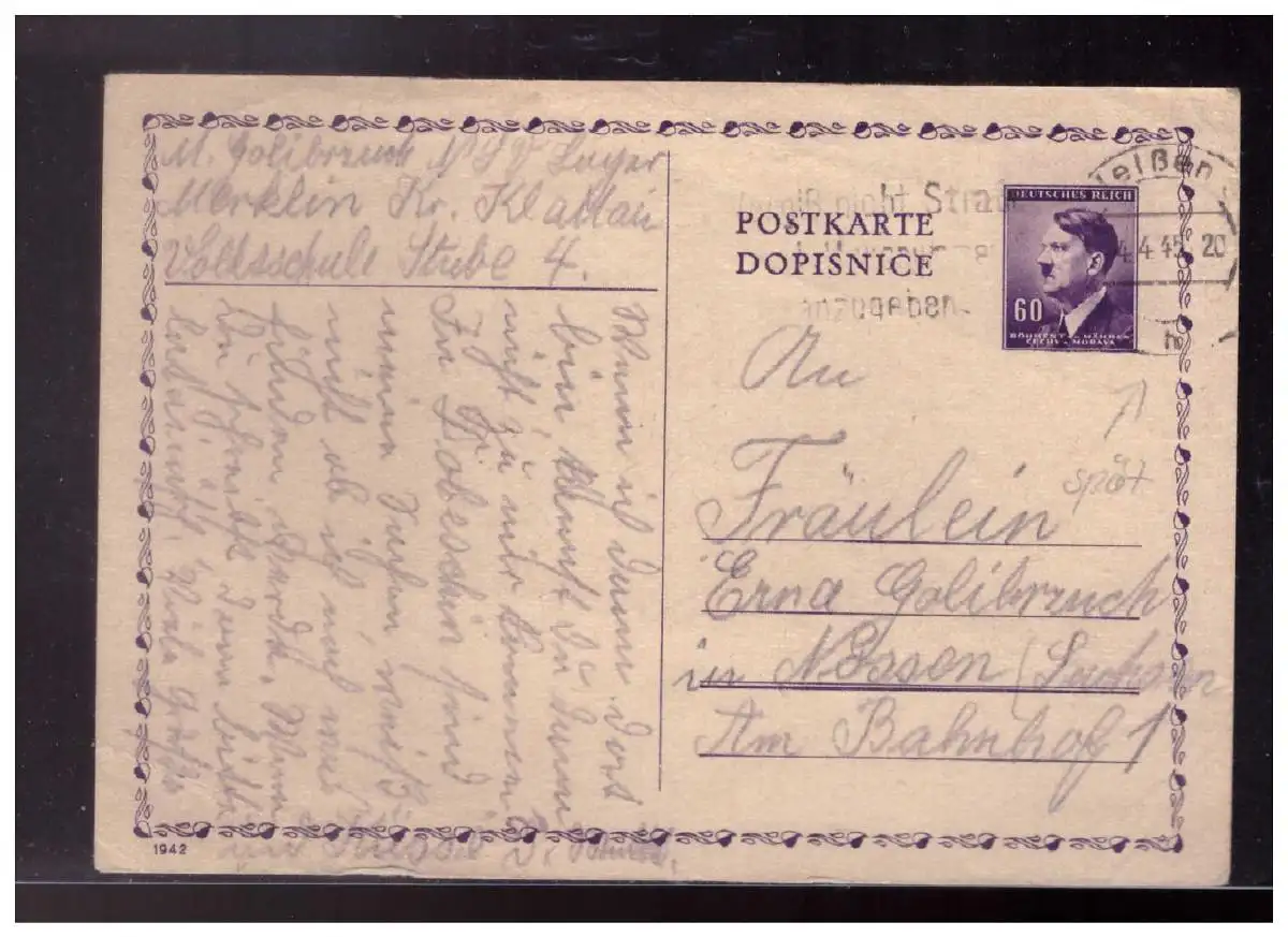 Böhmen u. Mähren (023843) Ganzsache vom NSV (nationale Volkswohlfahrt) Lager Merklin,gelaufen am 4.4.1945 sehr Spät!!