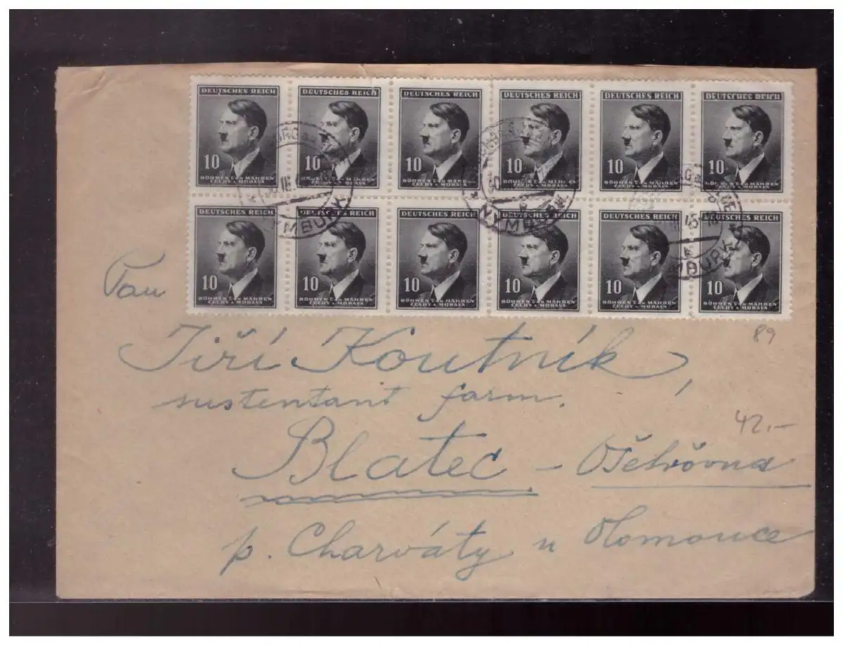 Böhmen u. Mähren (023844) Brief MEF MNR 89 12x auf Brief gelaufen RS Vignette