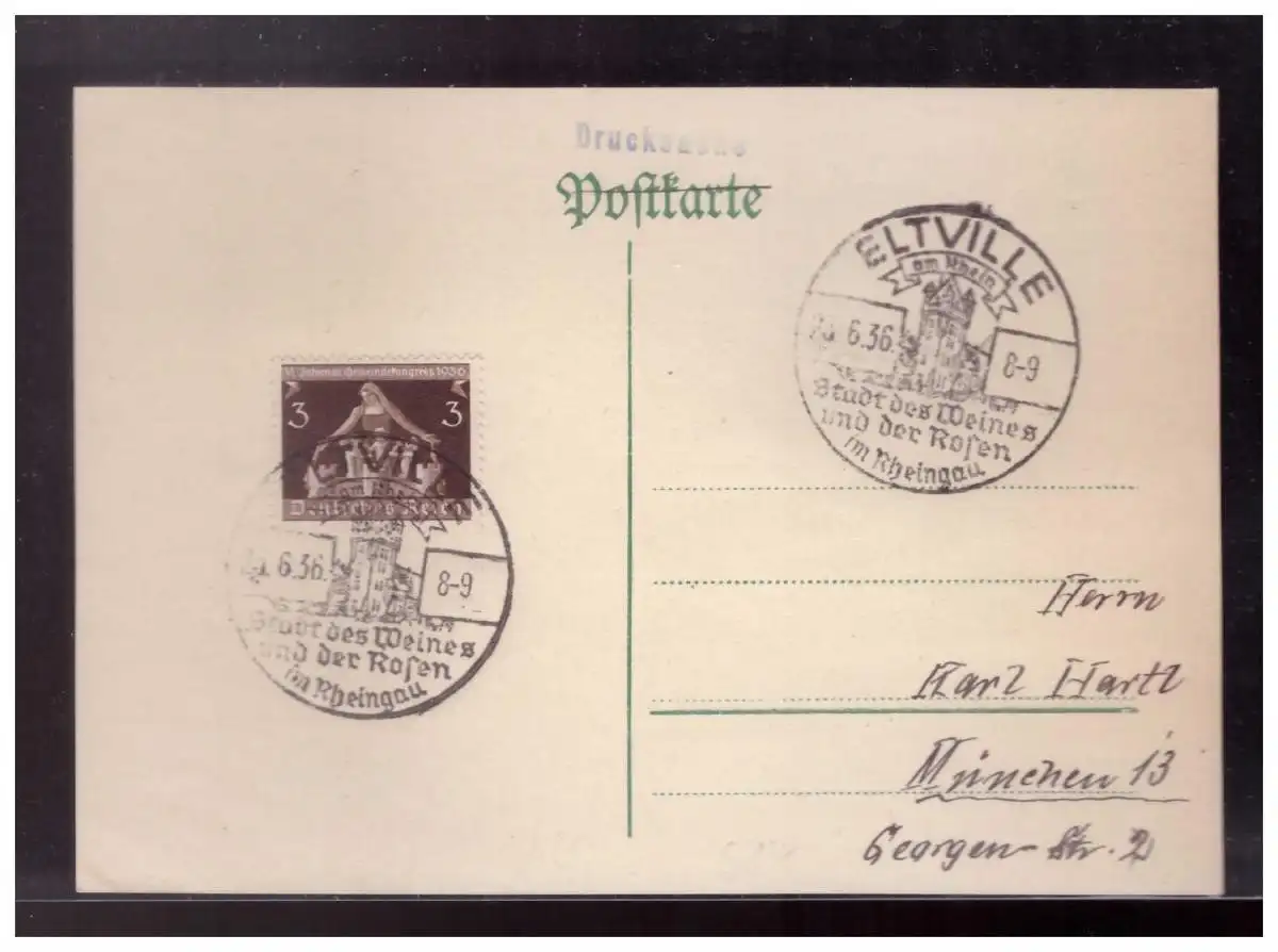 DT- Reich (023862) Postkarte mit Sonderstempel Eltville, Stadt des Weines und der Rosen, gest. 1936