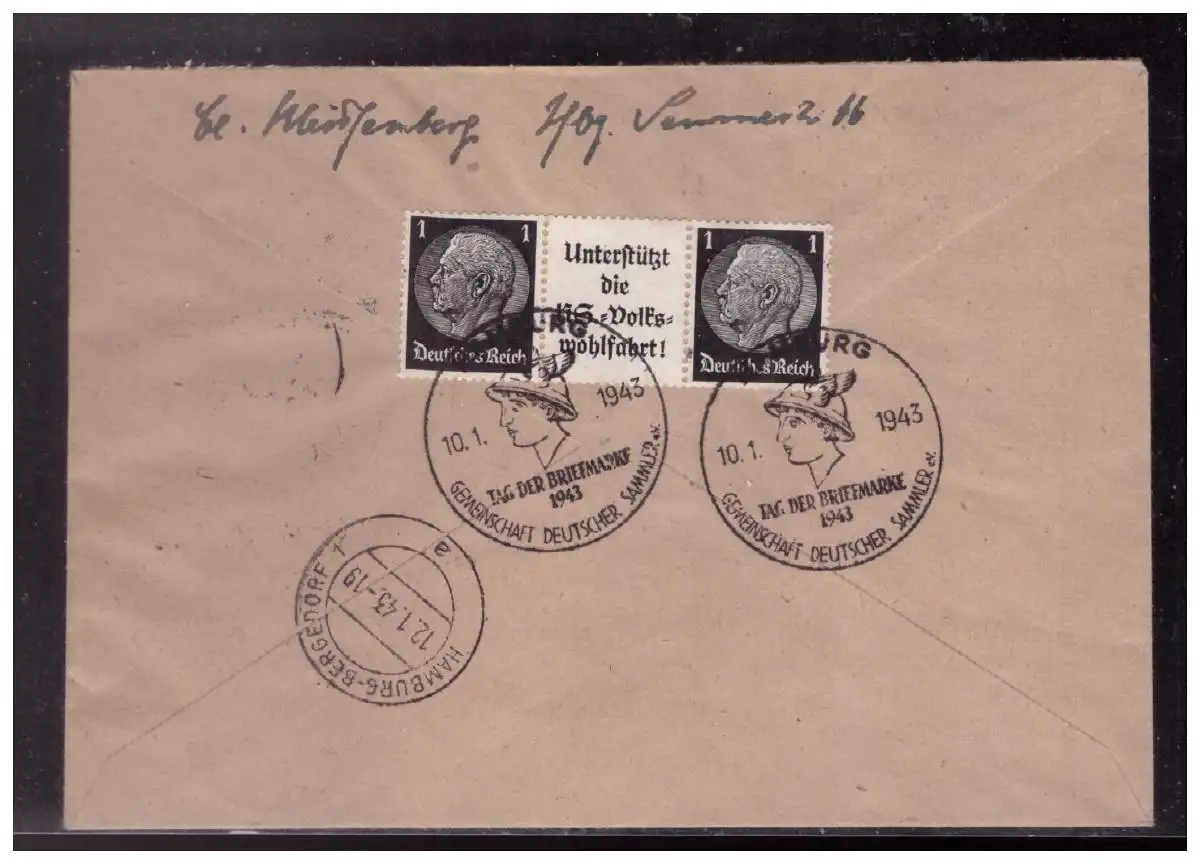 Dt- Reich (023922) Einschgreiben mit 6x MNR 828 (FDC) und Zd W92 gel. mit SST Hamburg am 10.1.1943