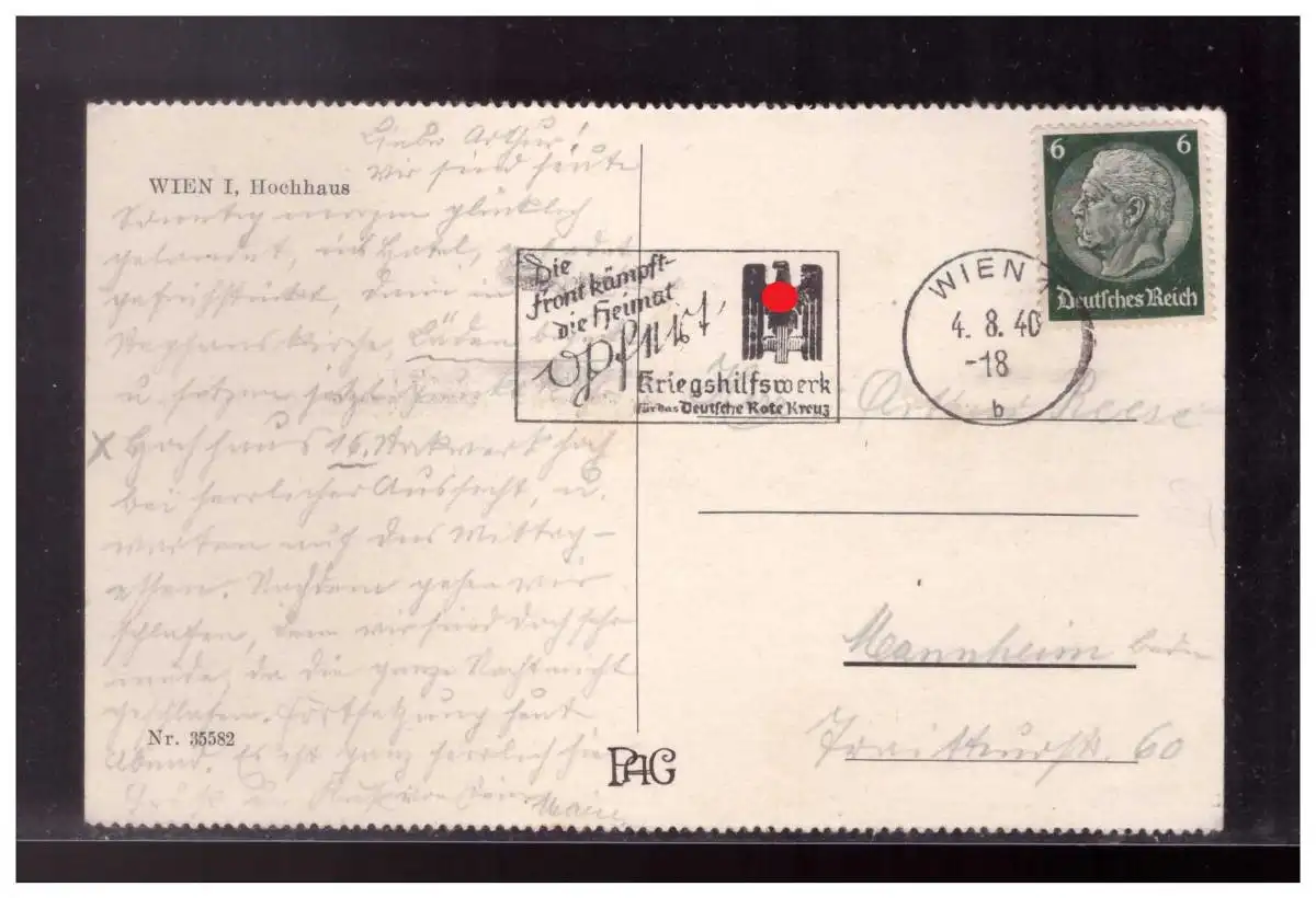 Dt- Reich (023941) Postkarte AK Wien Hochhaus, Werbestempel Die Front kämpft die Heimat opfert Kriegshilfswerk vom 4.8